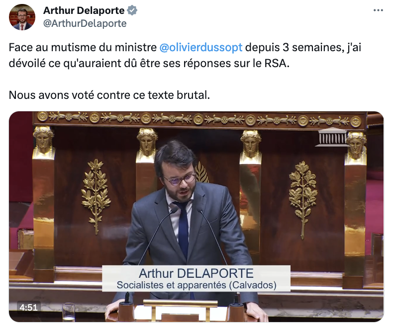 Le projet de loi « pour le plein-emploi » a été adopté mardi à l’Assemblée nationale. Les député·e·s socialistes, représentés par Arthur Delaporte, ont voté contre cette réforme brutale du RSA dénoncée depuis des mois.