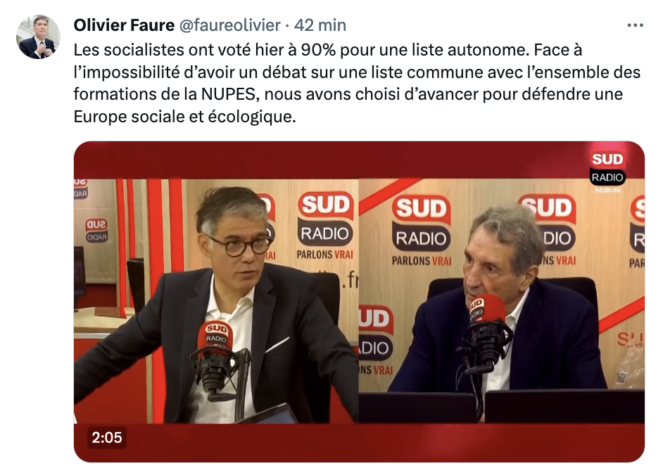 Suite au vote des militantes et des militants, Olivier Faure était au micro de Sud Radio ce matin. Outre les élections européennes, il s’est aussi exprimé sur la réforme constitutionnelle, l’examen du projet de loi immigration au Parlement et la situation au Haut-Karabakh.
