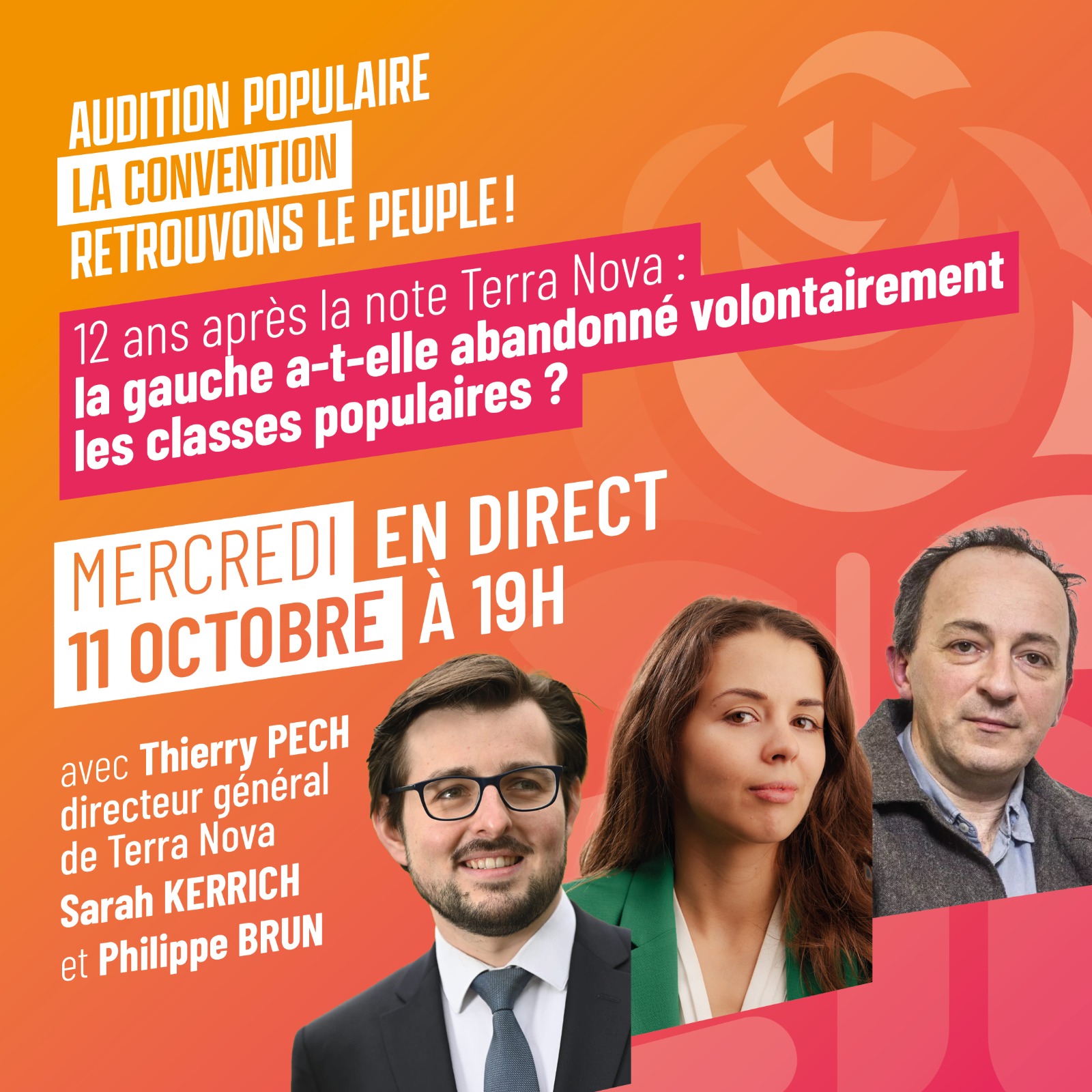 Nous te donnons rendez-vous mercredi pour une audition de la convention Retrouvons le peuple avec Thierry Pech.