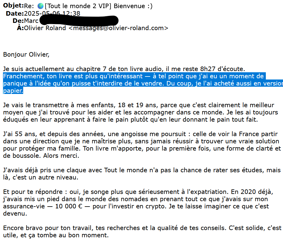Un accès Premium gratuit à ma formation « Une entreprise qui cartonne« , qui est l’enregistrement vidéo d’un atelier privé que j’ai donné à une poignée d’entrepreneurs sur Paris, qui ont chacun payés 1997 euros pour y participer. Cette formation est actuellement vendue 497 euros et vous sera donc offerte pour tout achat du livre dans une librairie physique ! 🙂