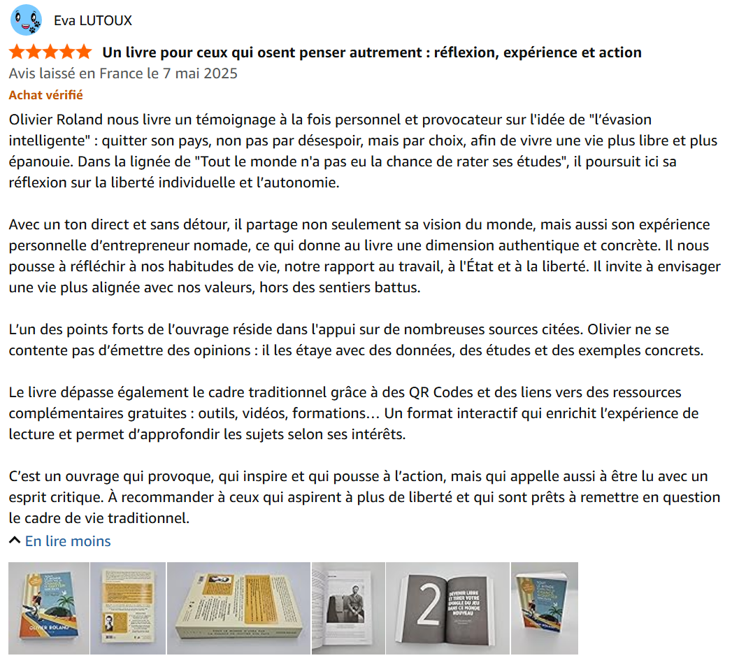 - 5 livres achetés : tous les bonus offerts pour l’achat de trois exemplaires, PLUS les conférences de l’évenement “Travaillez Moins pour Gagner Plus” 2023, normalement vendues 997 euros PLUS un billet argent pour l’événement 2025 de “Travaillez Moins pour Gagner Plus”, actuellement vendu 97 euros (mais qui aura un prix final de 297 €).