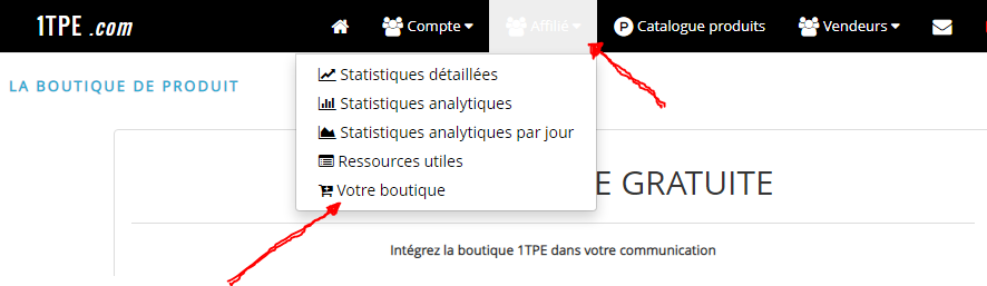 - Va dans la rubrique « Affilié » puis « Votre boutique » (voir capture)