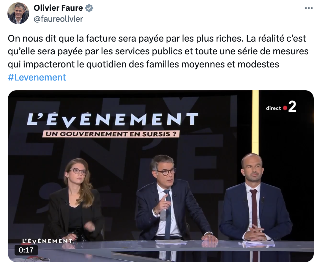Hier soir, suite à l’interview du Premier ministre sur France 2, Olivier Faure était dans « L’Événement » pour réagir et débattre des orientations dessinées par Michel Barnier.
