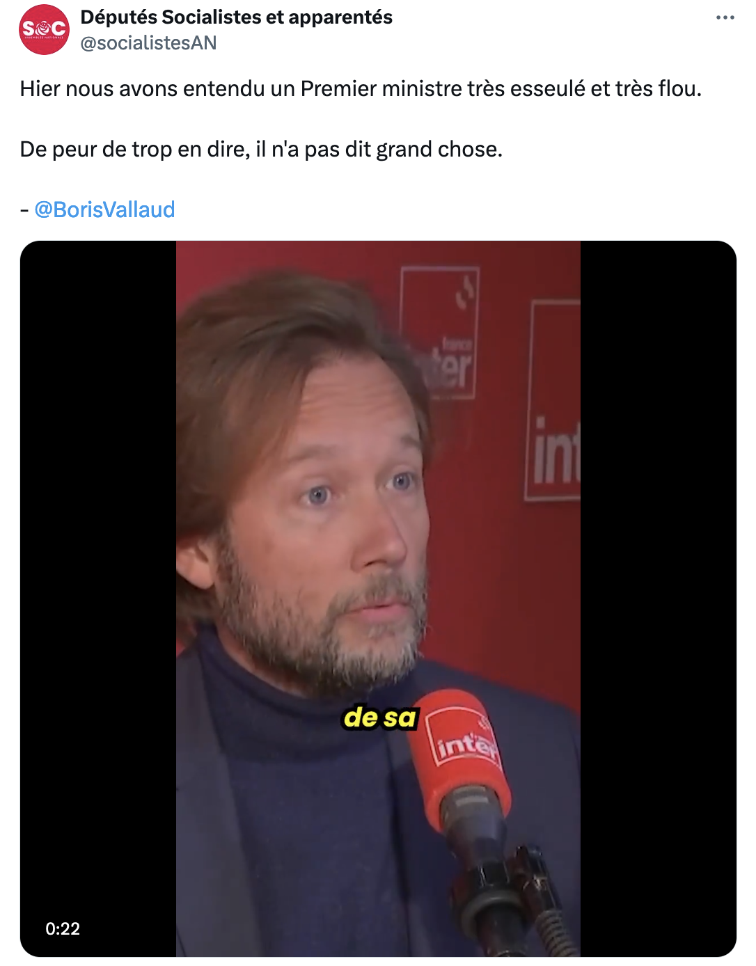 Mercredi matin, Boris Vallaud était au micro de France Inter pour revenir sur cette déclaration de politique générale :