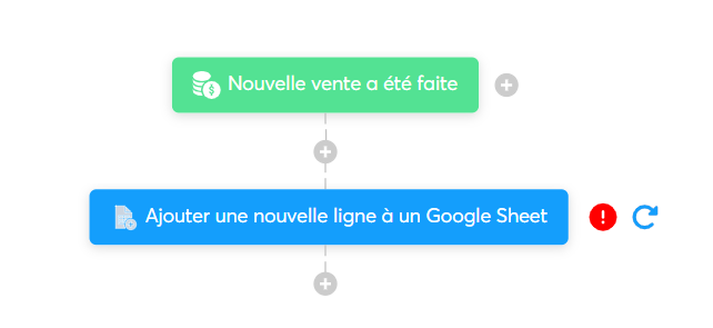 Vous maintenant choisir l’action “Ajouter une nouvelle ligne à un Google Sheet” dans un workflow