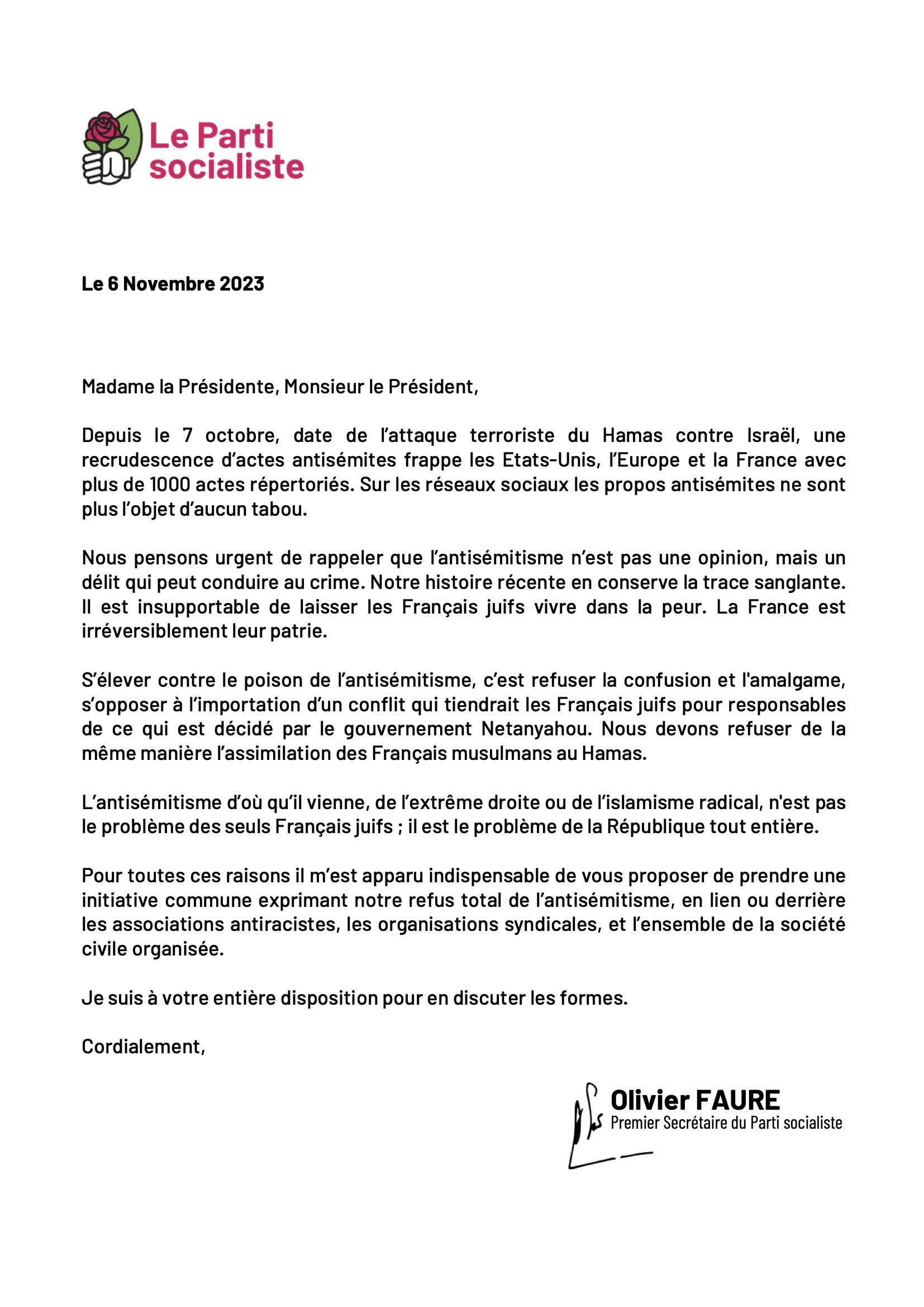 📬 Le courrier d’Olivier Faure pour une initiative commune contre l’antisémitisme