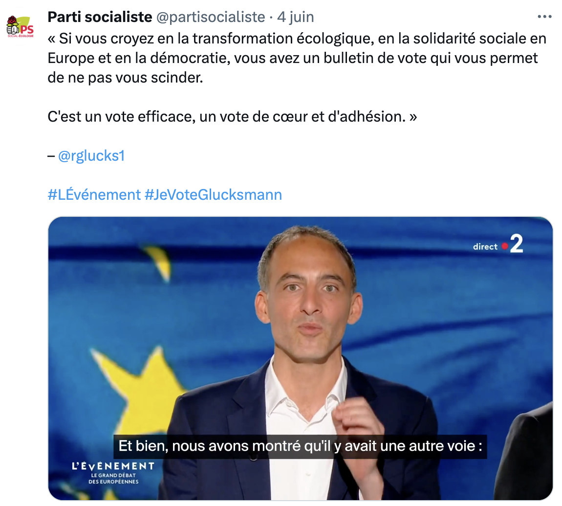 ✉️ Un seul bulletin pour changer la donne. Dimanche 9 juin, je vote Glucksmann !