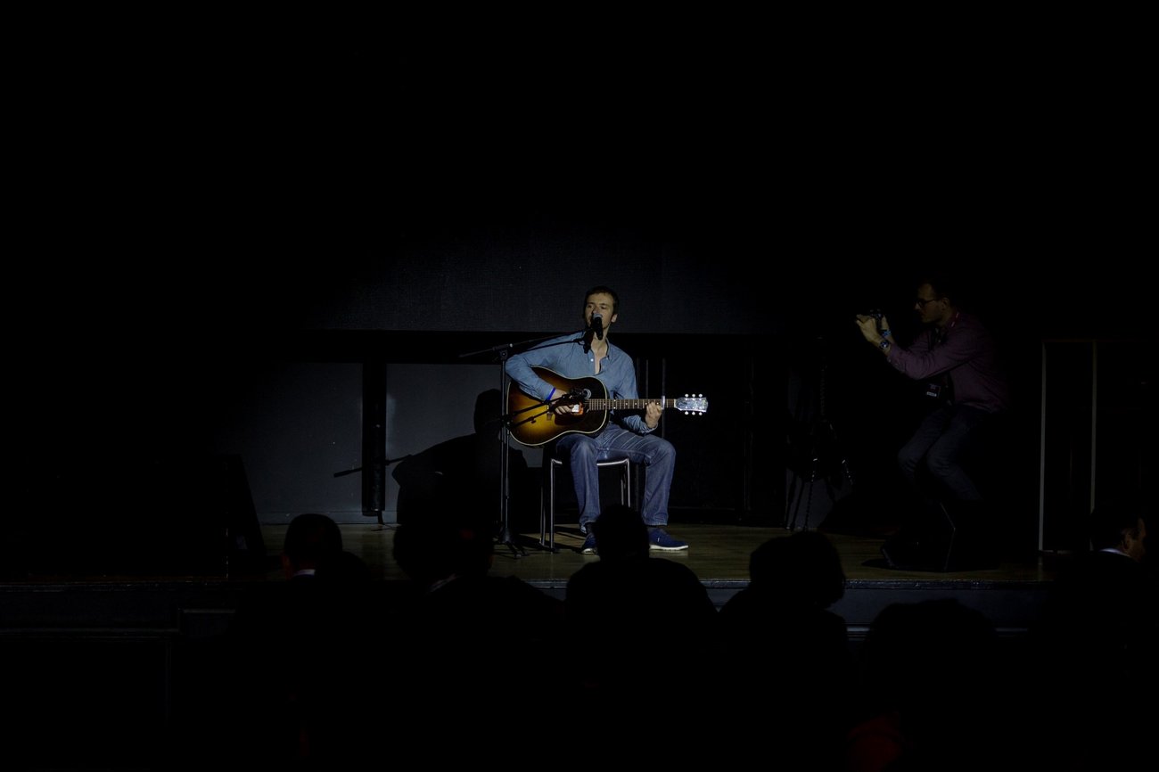 Oui, je me suis fixé le défi de jouer de la guitare sur scène : je suis un guitariste (très) amateur, et je n’avais jamais joué devant plus de 5 personnes avant.