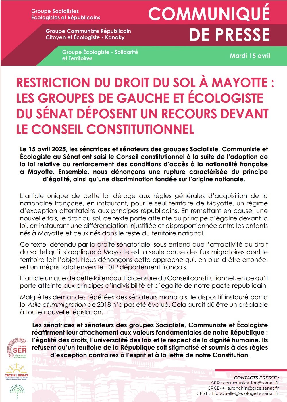 ❌ Droit du sol à Mayotte : Nous saisissons le Conseil constitutionnel