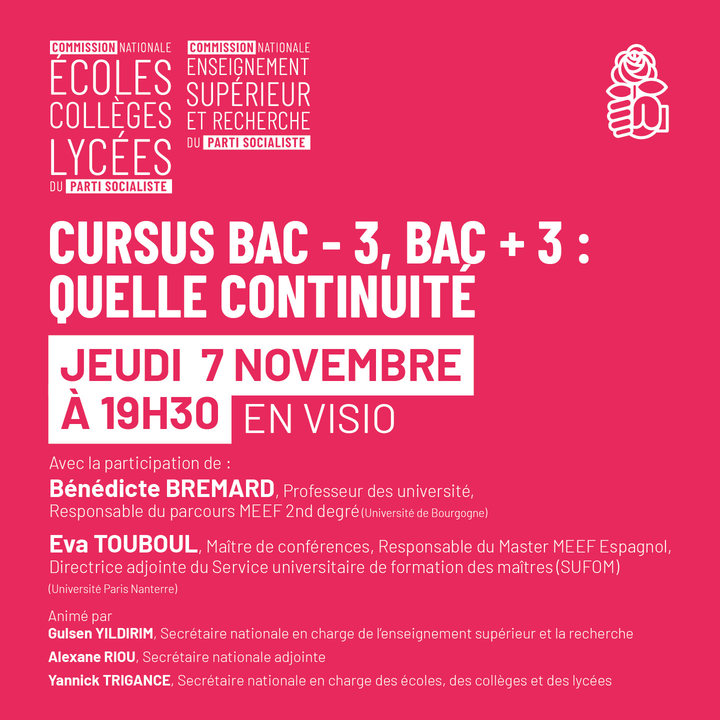 Commission nationale éducation et enseignement supérieur et recherche (jeudi 7 novembre à 19h30)