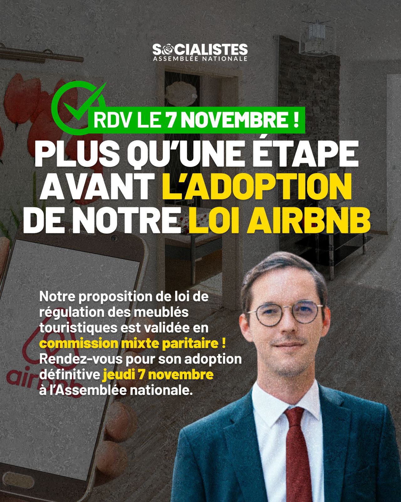 Lundi, les député·e·s et les sénateur·rice·s, réuni·e·s en commission mixte paritaire, ont trouvé un accord sur une version finale de la proposition de loi portée par Iñaki Echaniz pour l’encadrement des meublés de tourisme, type Airbnb, et pour favoriser le logement permanent.