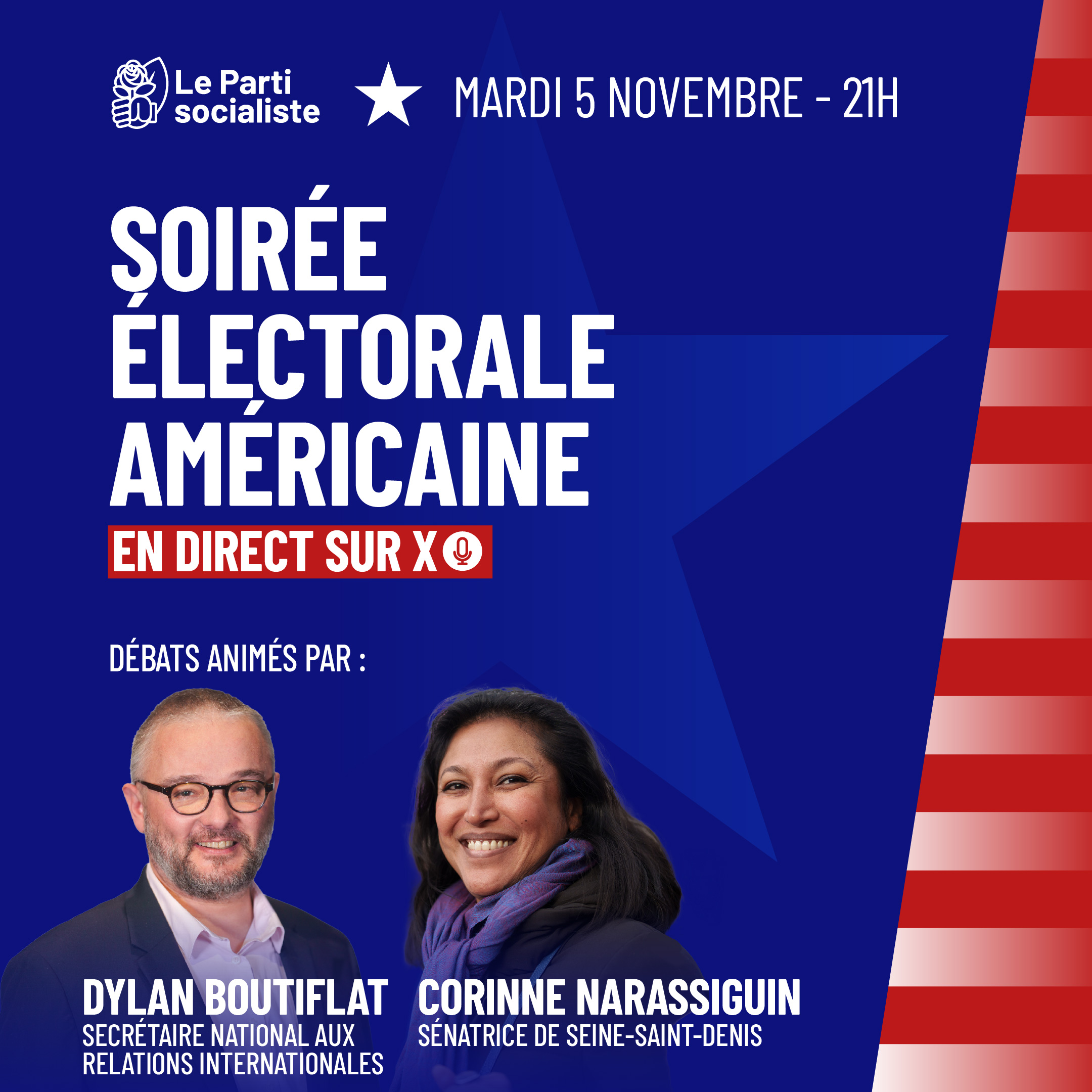 Nous débattrons des enjeux cruciaux de ce scrutin pour les États-Unis et le monde. Les débats seront animés par Dylan Boutiflat, secrétaire national du Parti socialiste aux Relations internationales, et Corinne Narassiguin, sénatrice socialiste de Seine-Saint-Denis.