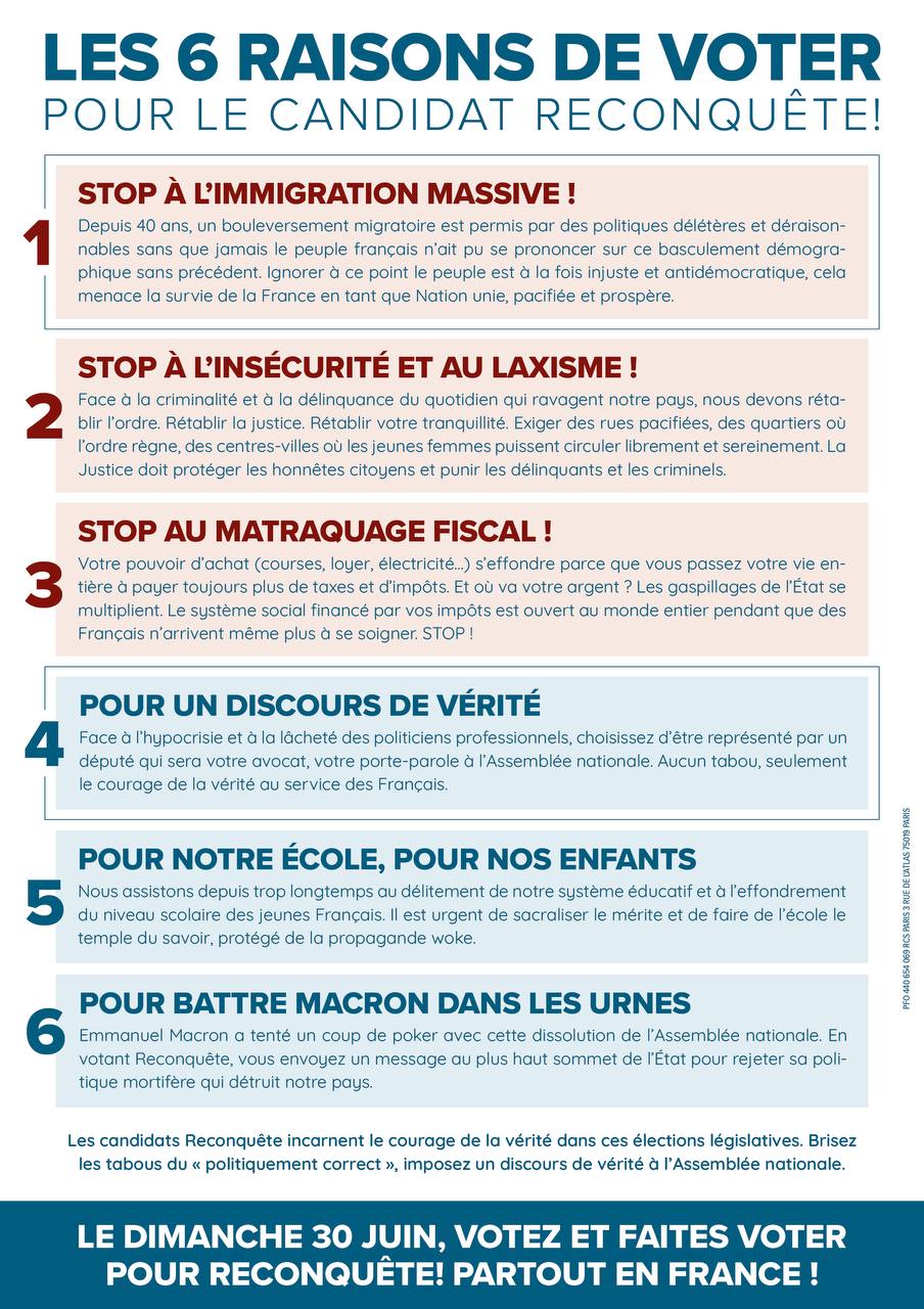 6 raisons de voter pour les candidats Reconquête ce dimanche