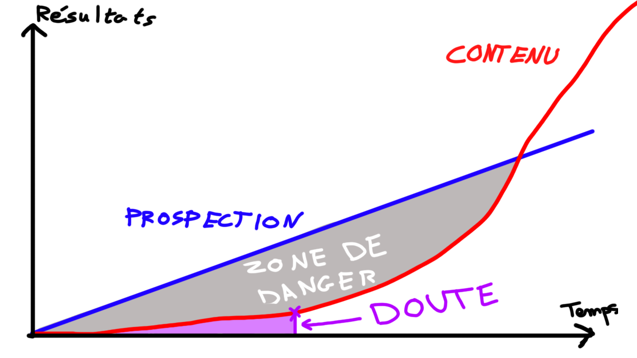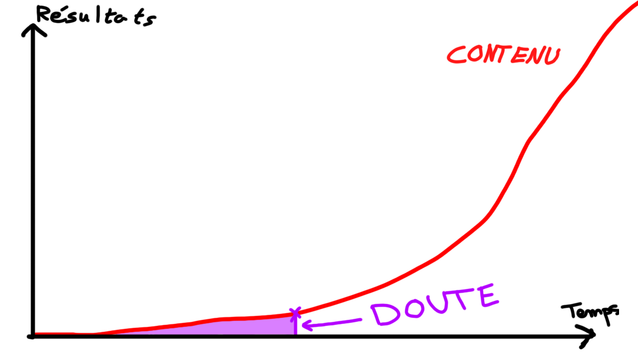 Ainsi, vous évitez la “zone de danger” de tout créateur de contenu, qui se situe généralement aux alentours de 6 à 18 mois : c’est le moment où vous travaillez dur depuis un moment, et vous avez des résultats, mais “pas assez”.