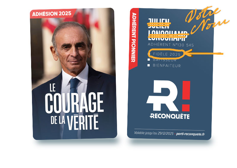 En janvier, quand vous tiendrez votre carte de membre Reconquête 2025, un détail attirera votre attention : la mention « Fidèle 2025 ».
