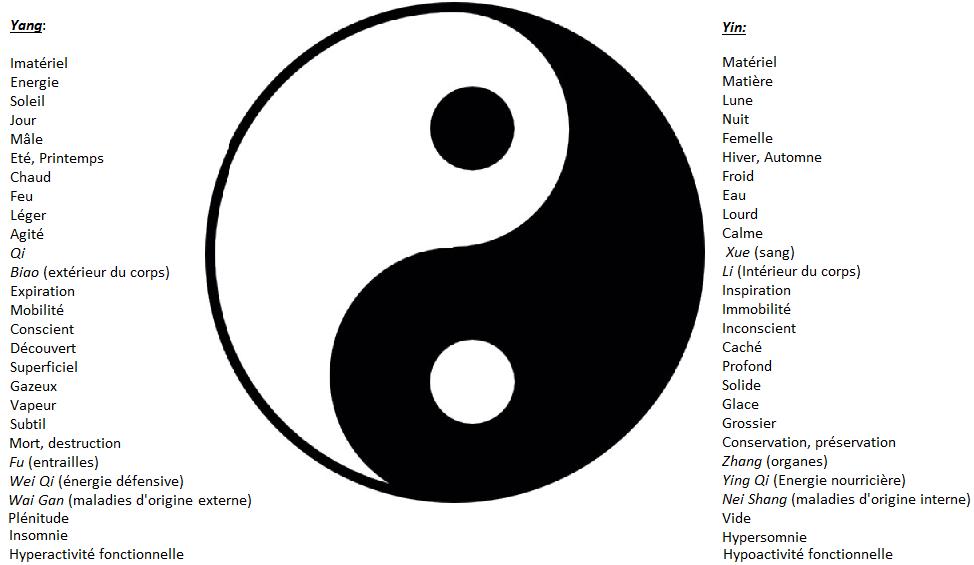 En médecine chinoise, le Yin et le Yang servent à qualifier le rythme fondamental qui anime le qi, l’énergie : le qi qui se meut, qui augmente est qualifié de yang, celui qui revient à la quiétude est yin.