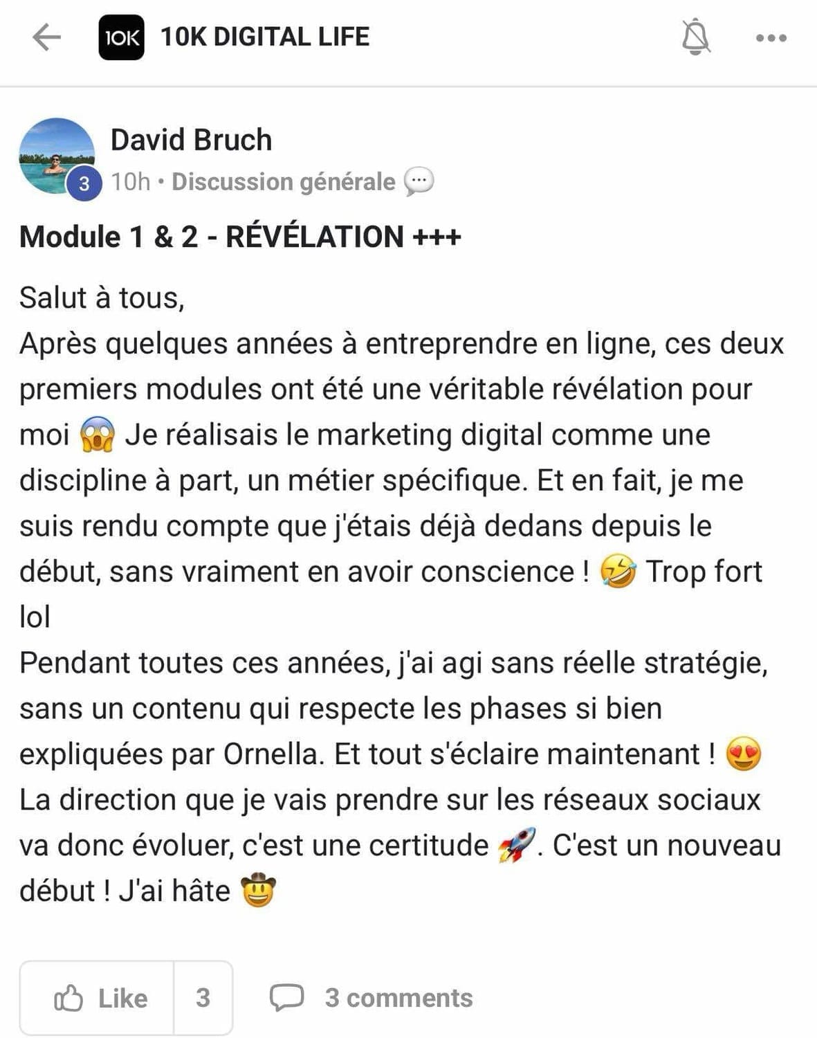 Si tu veux rejoindre la 10K Digital Life et profiter de l’accompagnement sur 3 mois avec Ornella, dépêche-toi, il reste 10 places, et elle devrait partir dans l’heure..