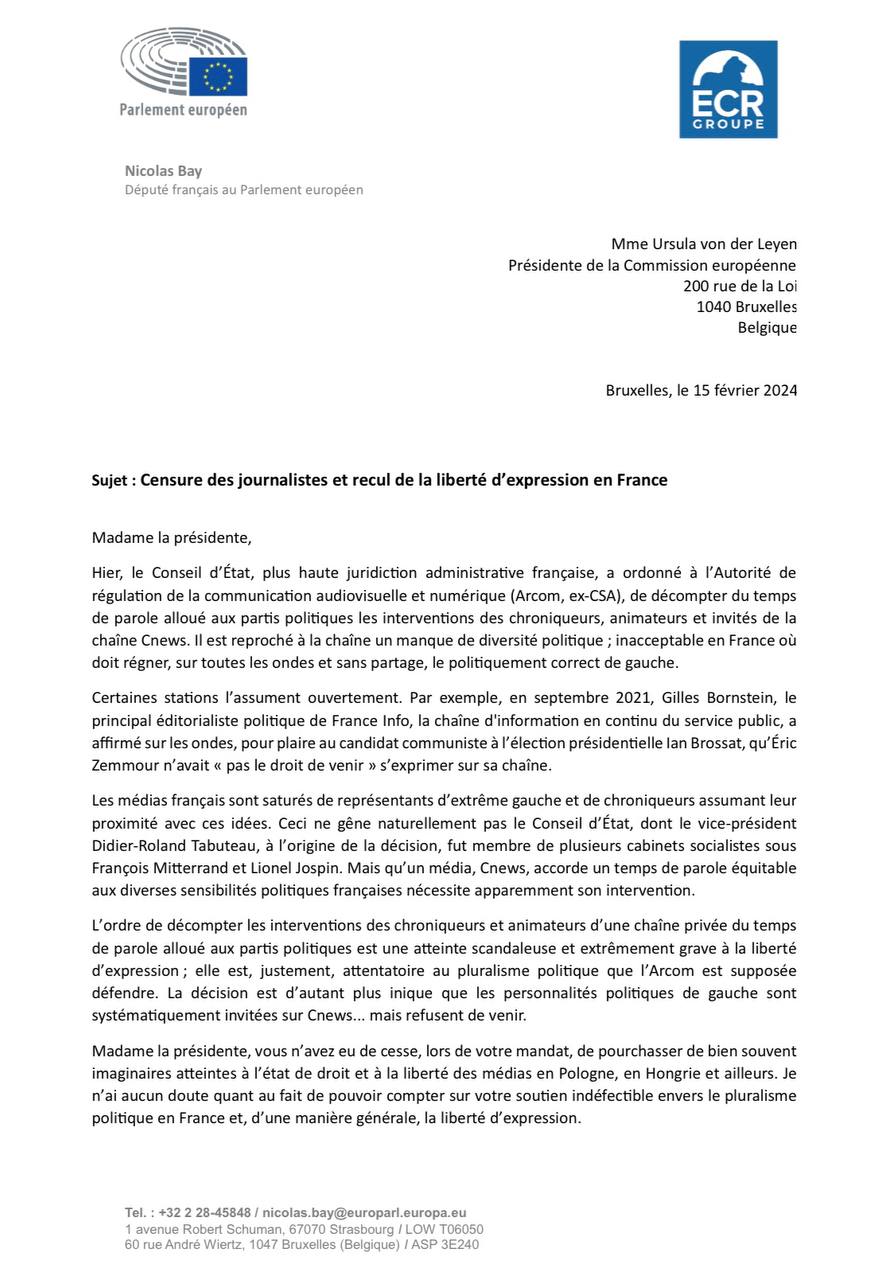 Censure de CNEWS : lettre ouverte à Ursula von der Leyen !