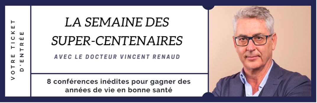 Pendant cette “semaine des super-centenaires”, vous recevrez CHAQUE jour une conférence pour anticiper, prévenir et soigner les pathologies liées à l’âge.