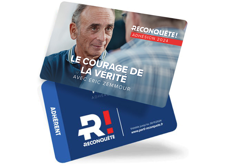 Ou encore une adhésion simple de 30 € ne vous revient qu’à 10,20 €. Adhérez maintenant à Reconquête et recevez votre Carte d’Adhérent !