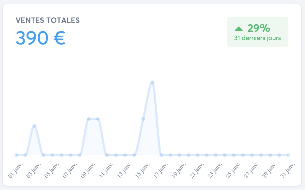 En seulement 15 jours, j’ai réalisé 390€ de ventes automatiques, avec un compte Instagram fraîchement relancé et une audience qui venait à peine de redémarrer.