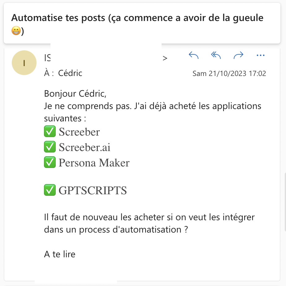 Question reçue à l’instant : Contrairement à ce nouvel outil en préparation : 1️⃣ Screeber, Screeber.ai, Calengo et GPTSCRIPTS ne te permettent pas de programmer tes posts sur tes réseaux…
