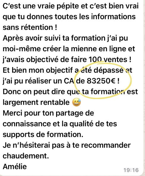 Mais une fois que ce travail est fait, que ta formation est en vente : tu peux la vendre à l’infini sans avoir à investir 1€ et sans avoir à refaire le travail de création !