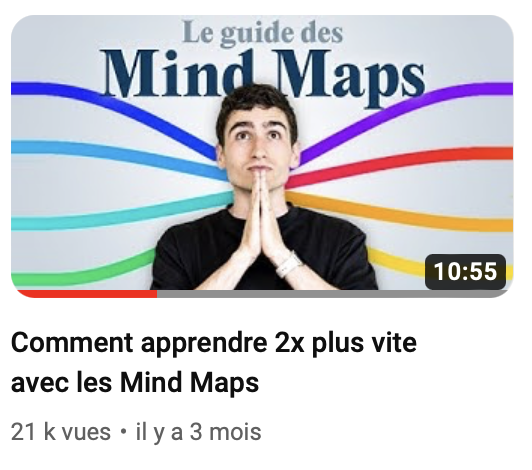 Par exemple, il y a quelques mois, j’ai publié cette vidéo YouTube, sur la puissance des Mind Maps.
