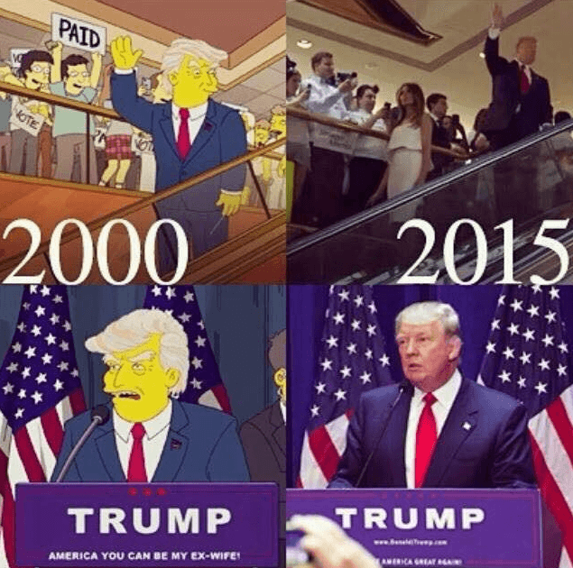 Encore plus suspect, le fait que les Simpsons aient prédit que le 45ème président des Etats-Unis serait Donald Trump.