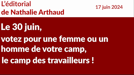 L’éditorial en vidéo : Le 30 juin, votez pour une femme ou un homme de votre camp, le camp des travailleurs ! .