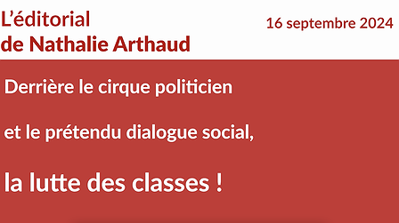 19/09/24 Lettre d'information nationale Editorial Derrière le cirque politicien et le prétendu dialogue social, la lutte des classes La fête de L’Humanité, qui s’est tenue ce week-end, a rassemblé…