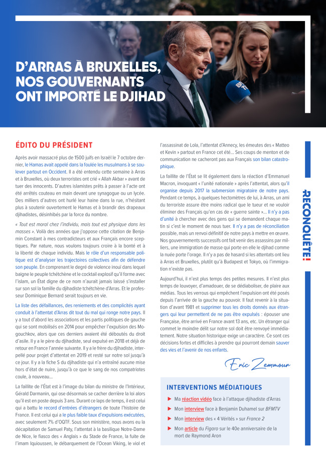 Nous vous adressons le trente-huitième numéro de L’Hebdo de Reconquête!.