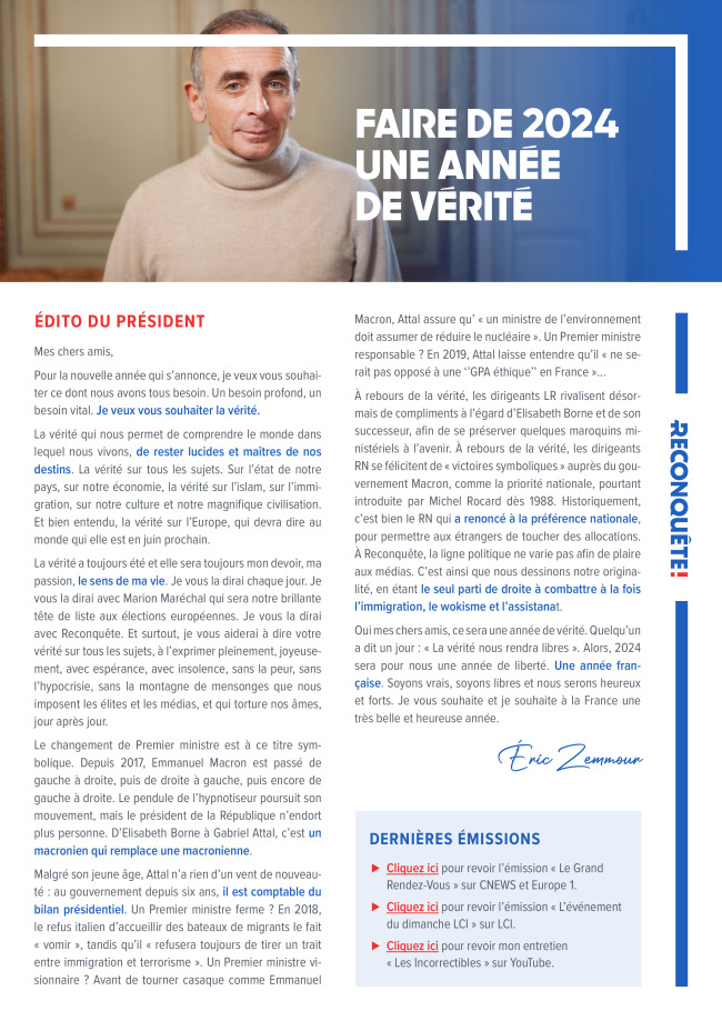 Merci encore pour vos retours positifs, vous pouvez continuer à nous faire part de vos impressions sur la boite mail : contact@parti-reconquete.fr