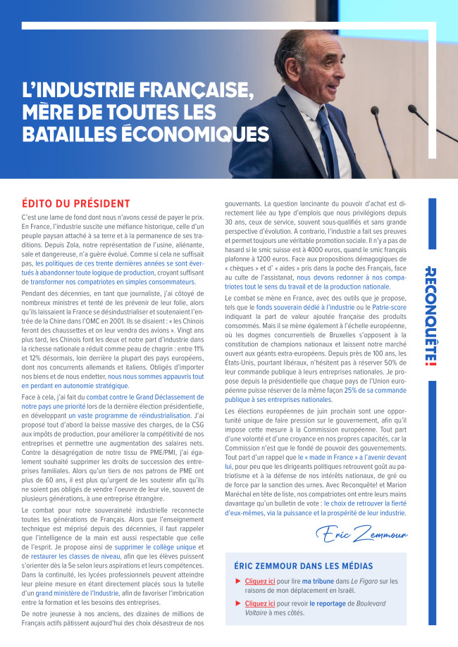 Découvrez ce nouveau numéro ! Chère amie, Cher ami, Nous vous adressons le quarante-et-unième numéro de L’Hebdo de Reconquête!. Pour lire maintenant le 41e numéro de L’Hebdo, cliquez…