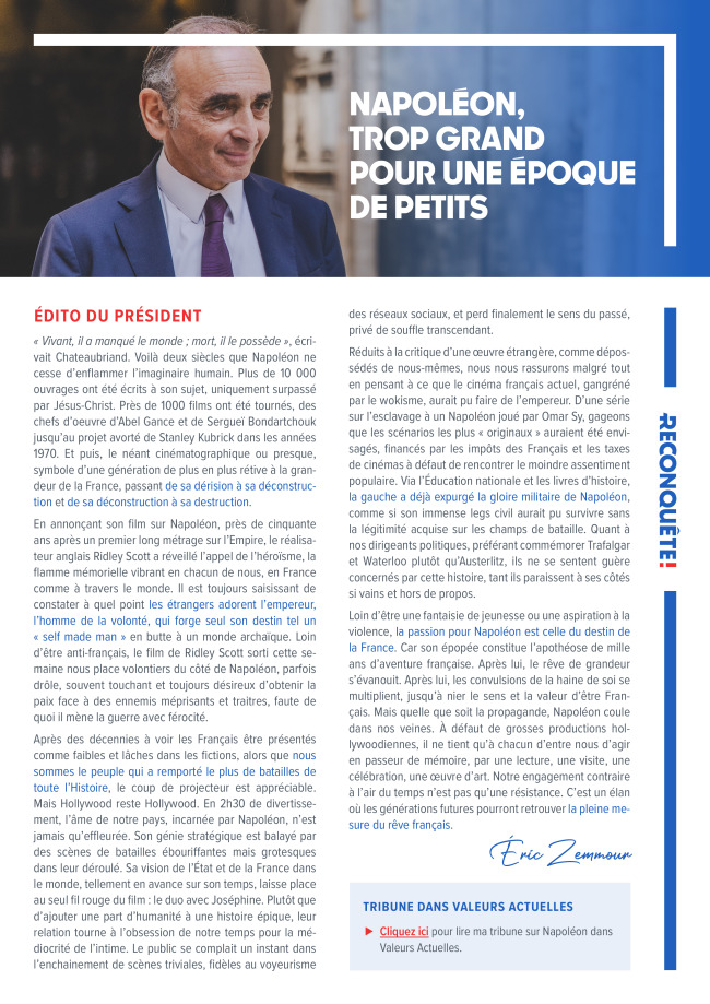 Découvrez ce nouveau numéro ! Chère amie, Cher ami, Nous vous adressons le quarante-troisième numéro de L’Hebdo de Reconquête!. Pour lire maintenant le 43e numéro de L’Hebdo, cliquez…
