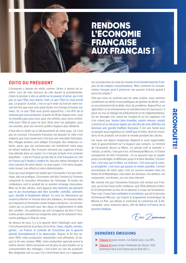 Merci encore pour vos retours positifs, vous pouvez continuer à nous faire part de vos impressions sur la boite mail : contact@parti-reconquete.fr