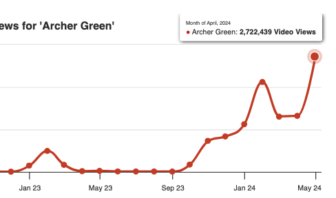 Cette chaîne a explosé sur les 6 – 8 derniers mois, passant de (quasi) zéro à 2,7 millions de vues ce mois-ci :