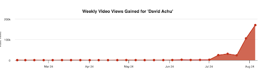 En juin, il a fait 6k vues sur l’ensemble de sa chaîne. Sur les 30 derniers jours, il en a fait 800k (x133).