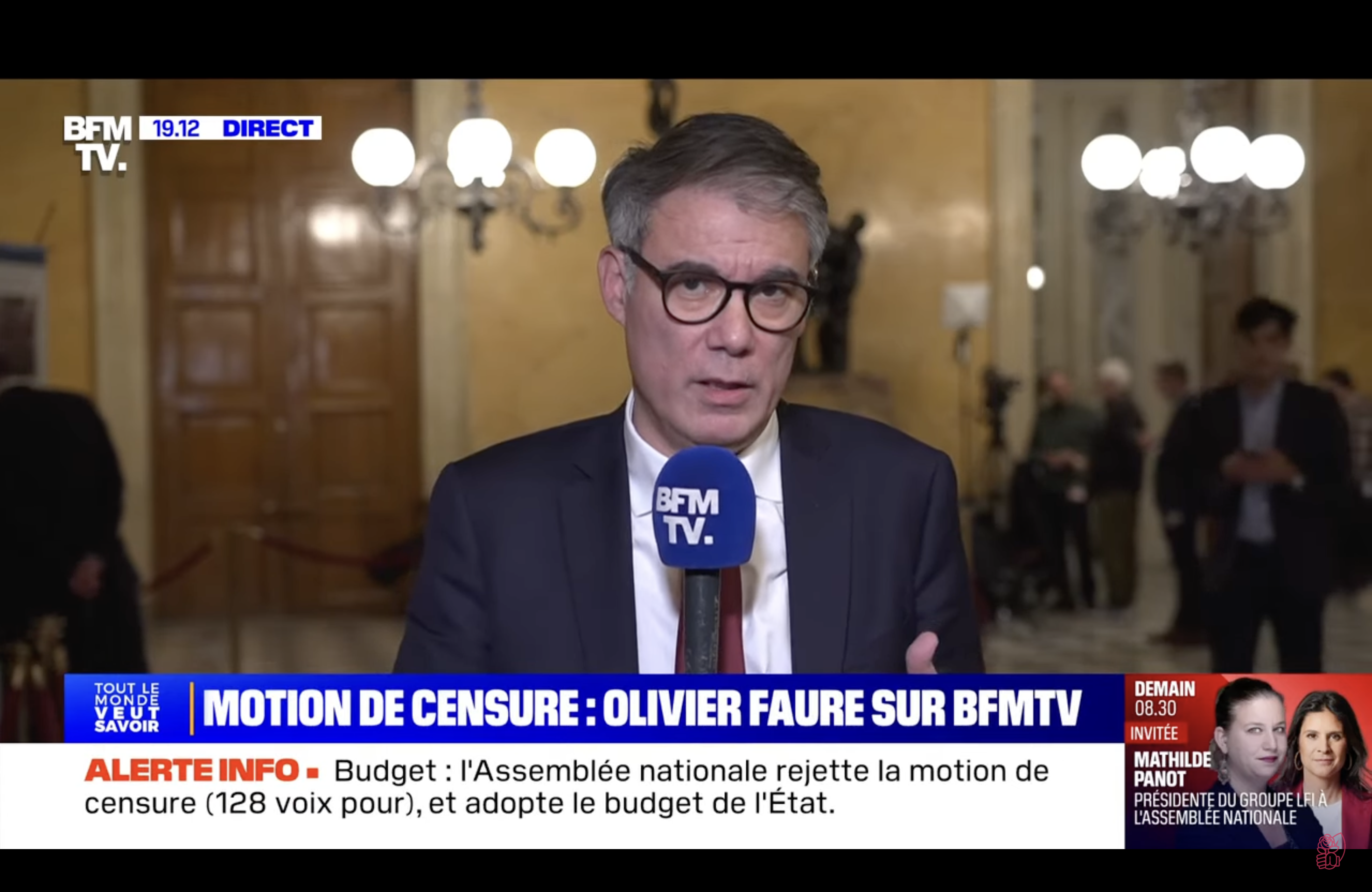 Olivier Faure réagit sur BFMTV à la motion de censure sur le budget :