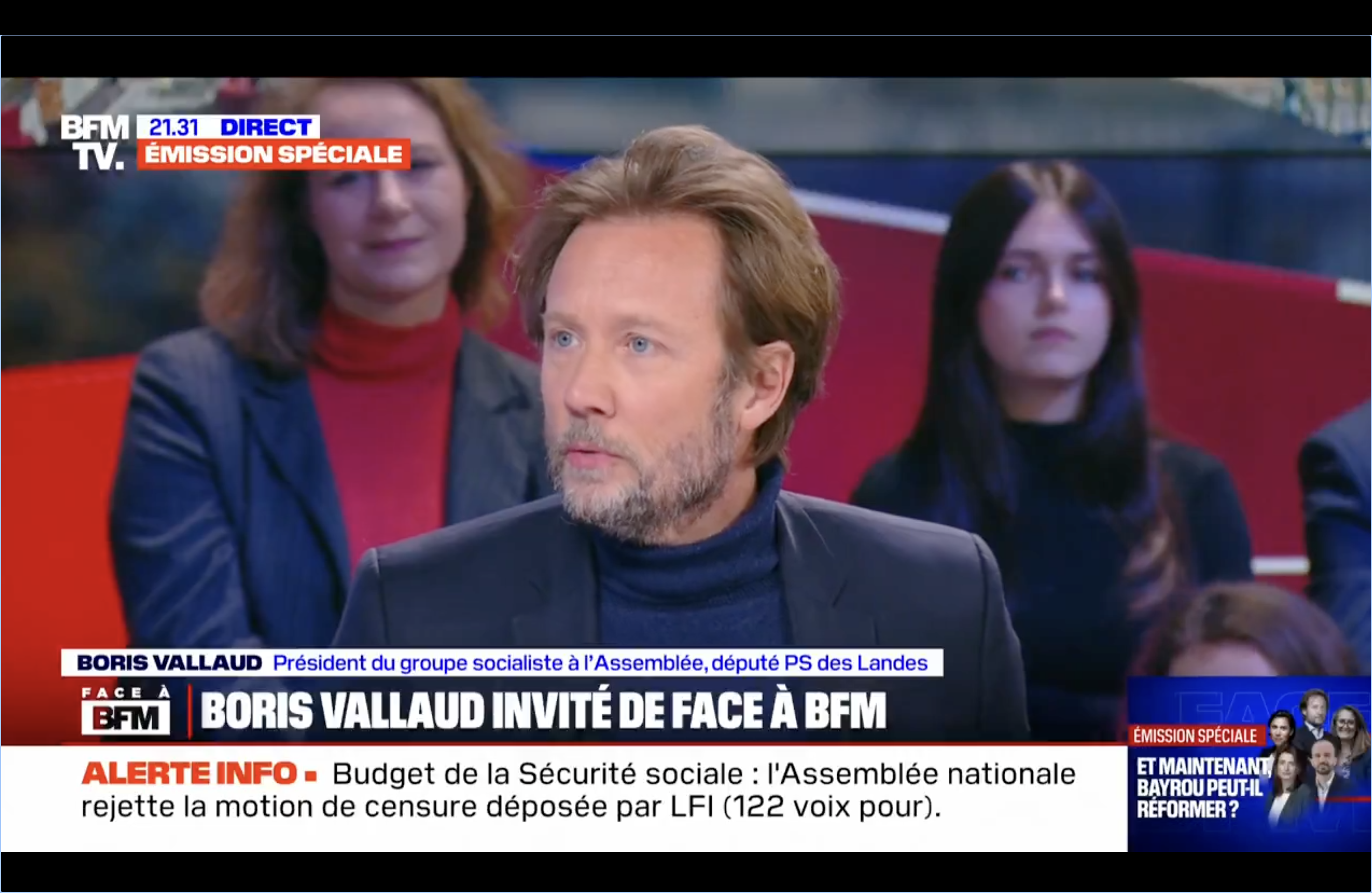 La réaction de Boris Vallaud, président du groupe des socialistes à l’Assemblée nationale.