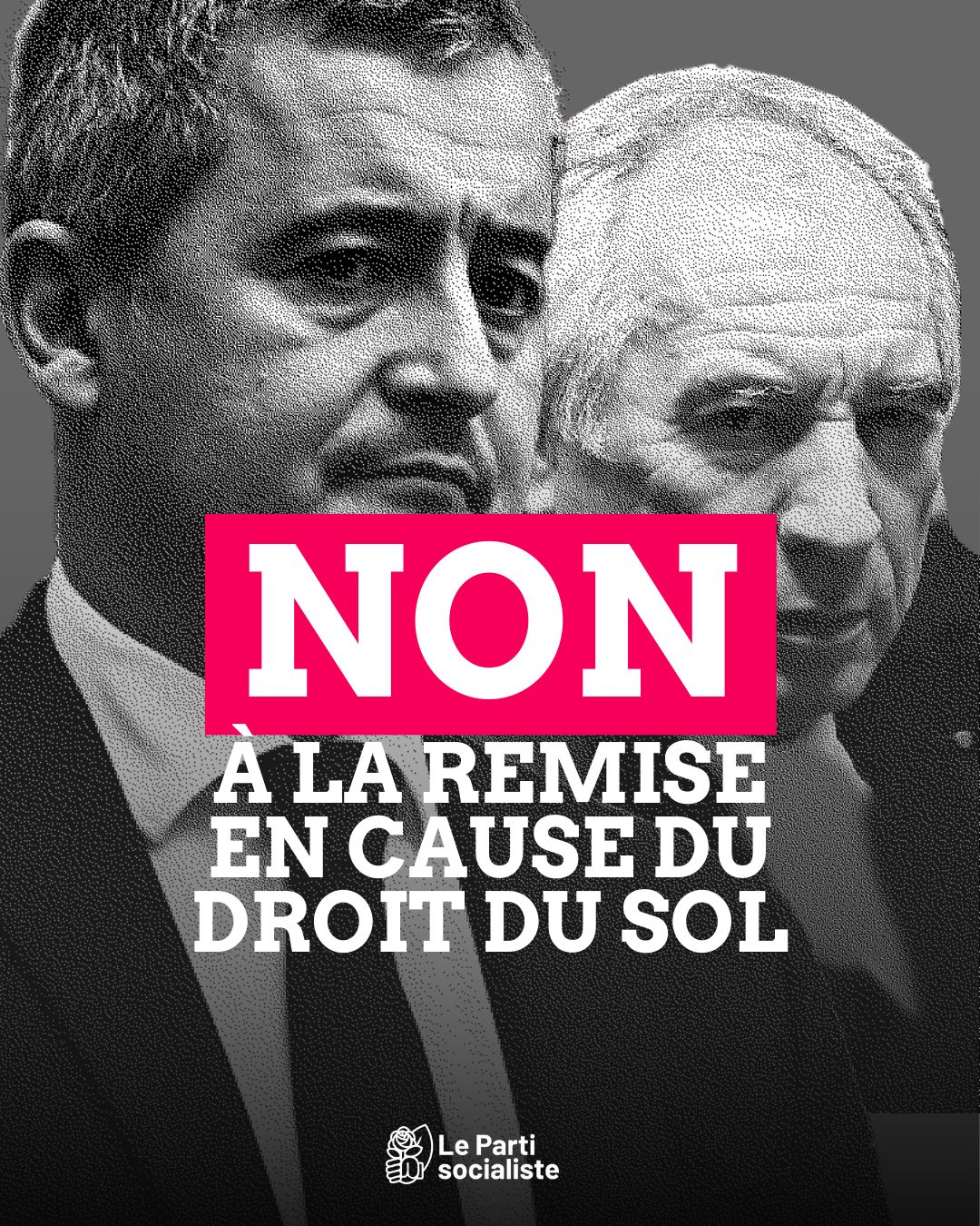 Ce matin, c’est Gérald Darmanin et François Bayrou qui annonçaient vouloir questionner le droit du sol sur l’ensemble du territoire français. C’est inacceptable. Nous nous battrons pour préserver ce droit fondamental de notre République. Nous le redirons le 19 février, avec notre motion de censure.