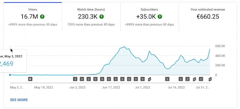 Parce que oui, la plupart des YouTubeurs ont réussi avant l’avènement des shorts. Mes 472k+ abonnés sont venus de bonnes vieilles vidéos virales (longues).