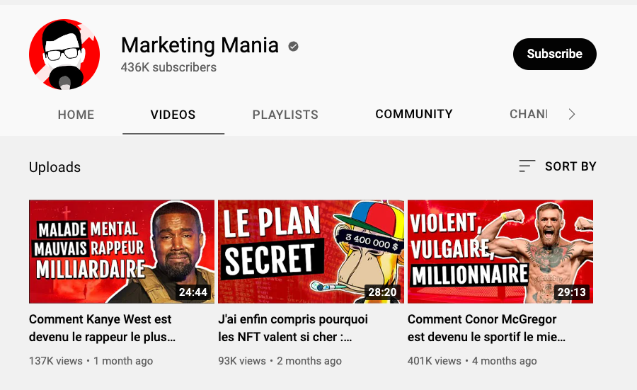 4 – L’avantage Marketing Mania 🔥 Dans YouTube Mania (inclus dans Le Nouveau Système), vous allez apprendre les techniques avancées que vous ne pouvez trouver nulle part ailleurs. Tous les gros YouTubeurs les connaissent, mais ils ne les partagent pas (c’est trop pointu pour intéresser leur audience). Et tous les autres formateurs marketing… ne connaissent pas ces techniques de rétention. Il suffit de regarder leurs résultats. À part Marketing Mania et Yomi Denzel, aucun ne dépasse 10k vues par vidéo. (Et à ma connaissance, Yomi Denzel n’a pas de formation sur ce sujet).