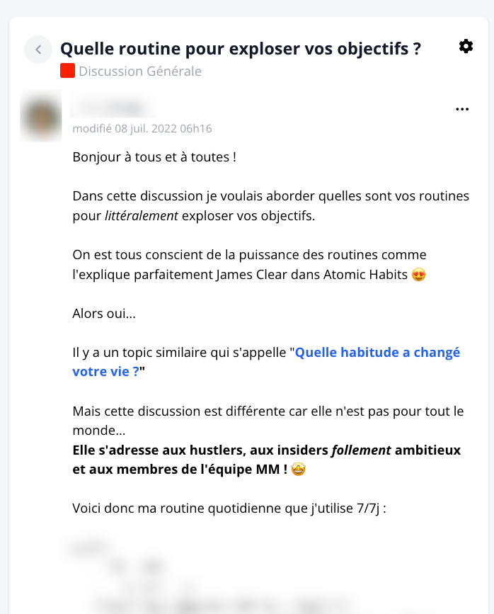 5 – La communauté 🙌 Et en plus de ça, vous aurez accès à ma communauté privée : Marketing Mania Insiders est une communauté d’entrepreneurs motivés pour partager vos progrès, poser vos questions et trouver l’inspiration. Vous n’aurez plus jamais besoin de monter un business dans votre coin : vous serez entourés d’entrepreneurs qui ont le même rêve que vous. Les membres y partagent leurs succès…