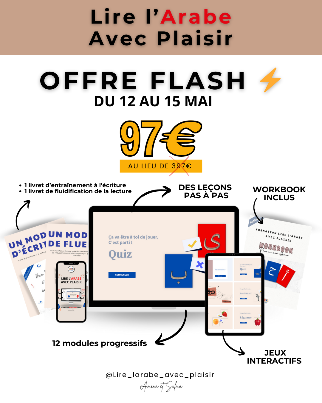 đ Du 12 au 15 mai, la formation Lire l’Arabe Avec Plaisir est au prix de 97⏠au lieu de 397âŹ