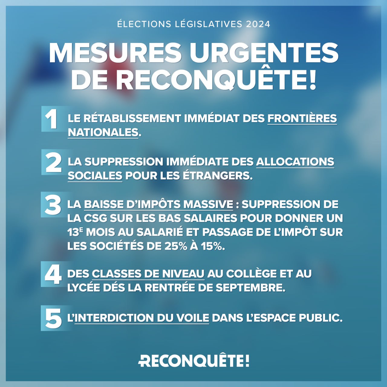Partagez sur Twitter / X Chère amie, Cher ami, NE PERDONS PLUS UNE SECONDE. Nos 5 mesures applicables immédiatement pour sauver la France. Partagez ce visuel sur Twitter /…