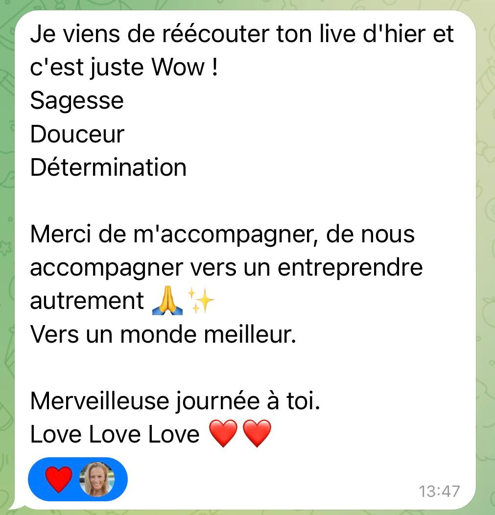 Hello Email Quel bonheur et honneur d’avoir partagé ce live concernant l’intention qui est la clé d’un succés grandissant Pour ressentir davantage , je t’invite à visionner le replay ,…