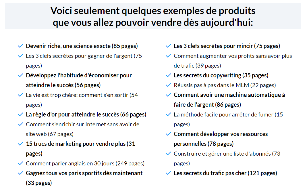 - Des pages de vente à copier coller pour gagner du temps.