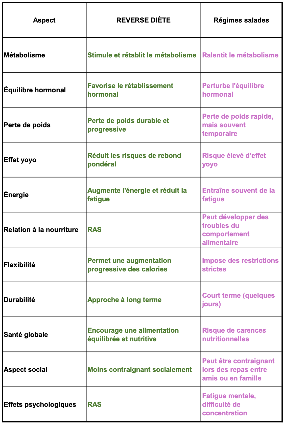 REVERSE DIÈTE VS régime salade