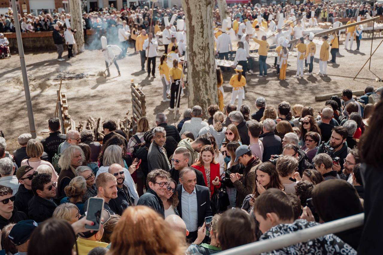 Foule compacte, musiques entremêlées, mosaïque d’éclats de rires, de sonneries clinquantes : Éric Zemmour était dans son élément, avec les Français de la traditionnelle fête de l’omelette à Bessières, pour soutenir Marion Maréchal dans la campagne des européennes.